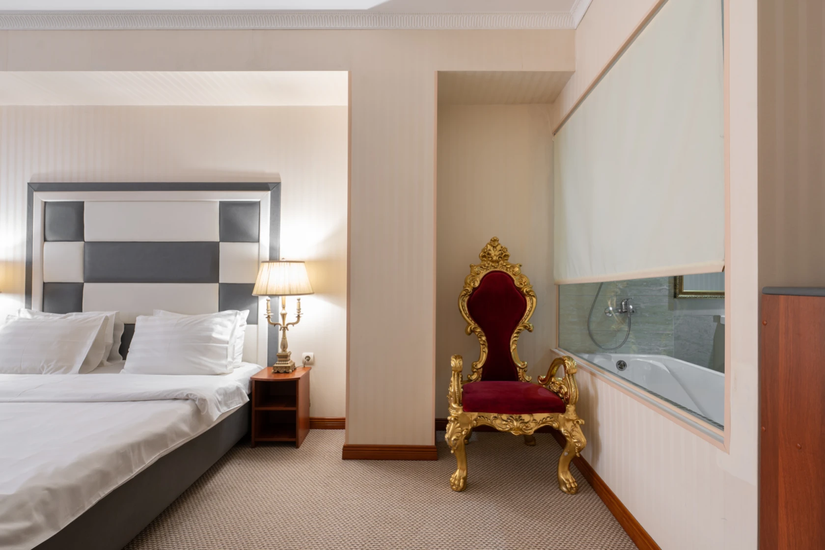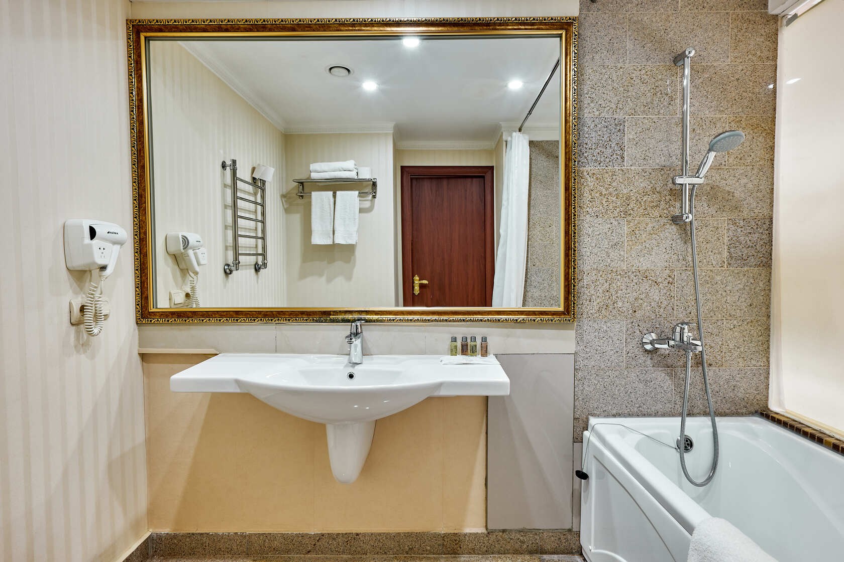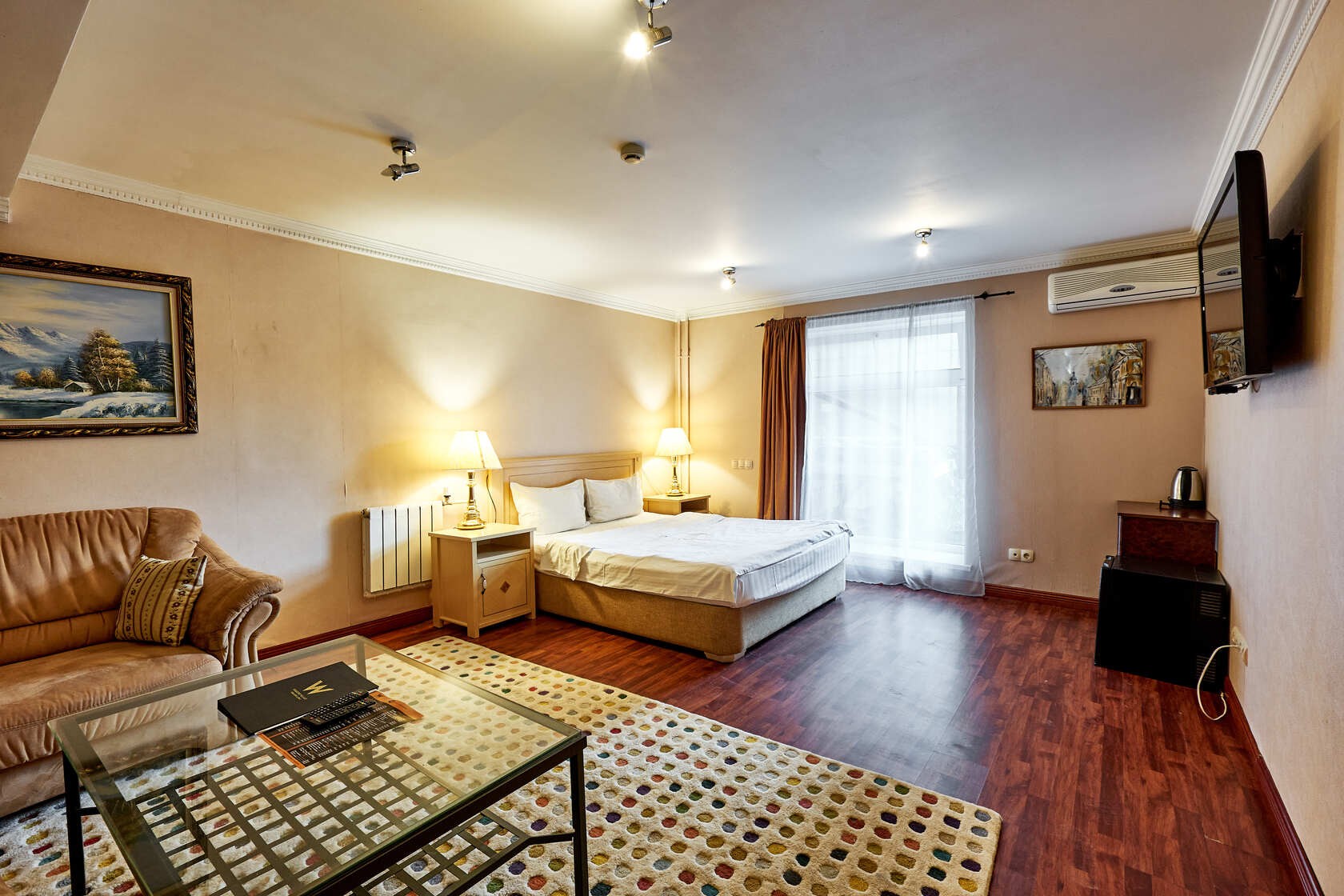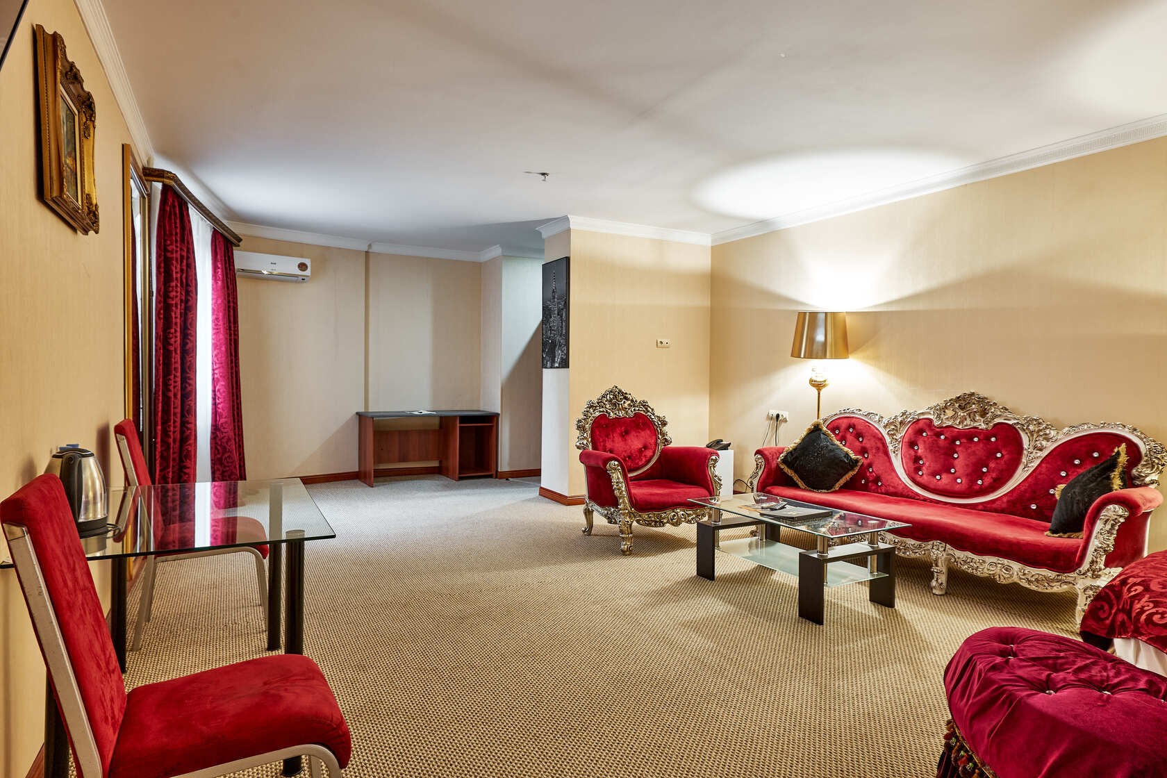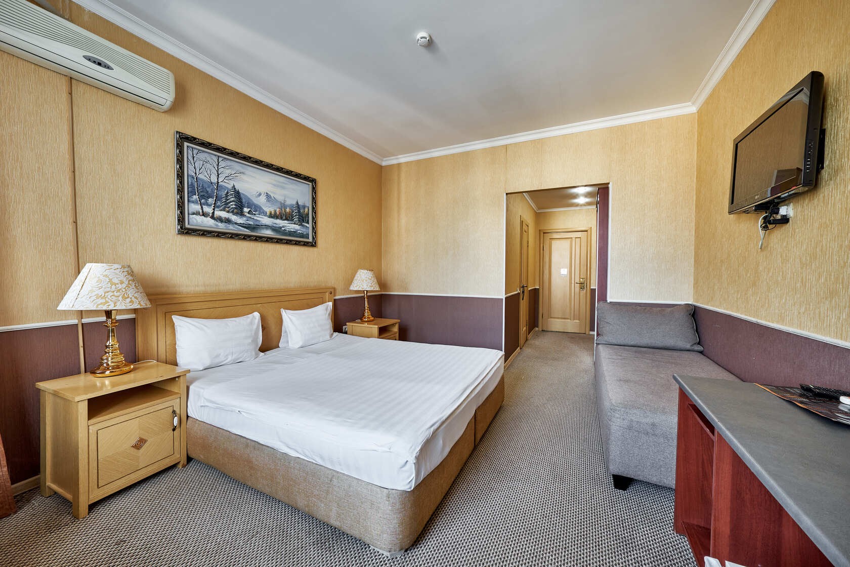 Habitación amplia de estilo clásico con zonas de ocio y de negocios. Las habitaciones tienen una superficie total de hasta 30 m2, están diseñadas en colores cálidos. El baño está equipado con Bañera o Jacuzzi y Secador de pelo.