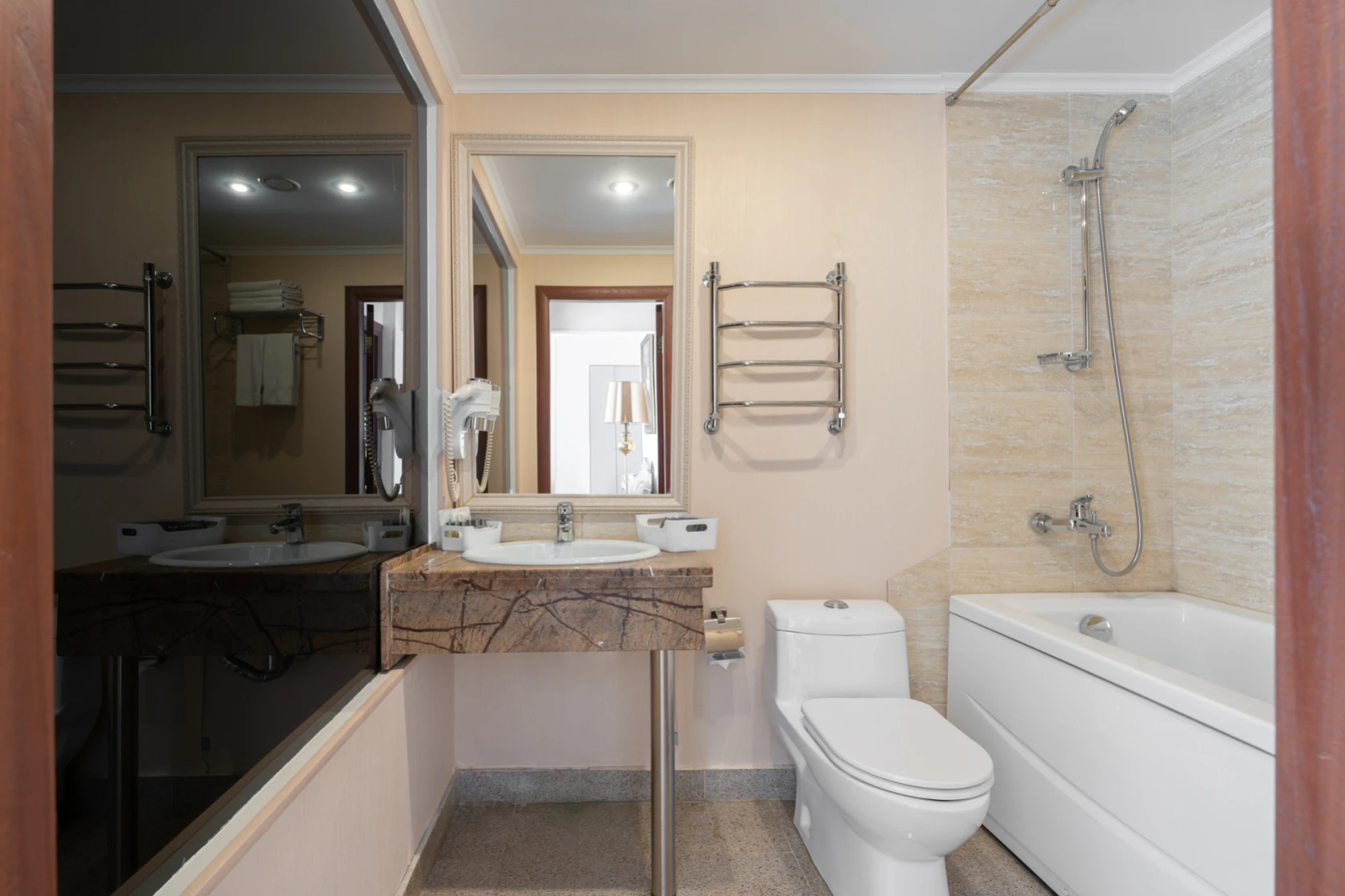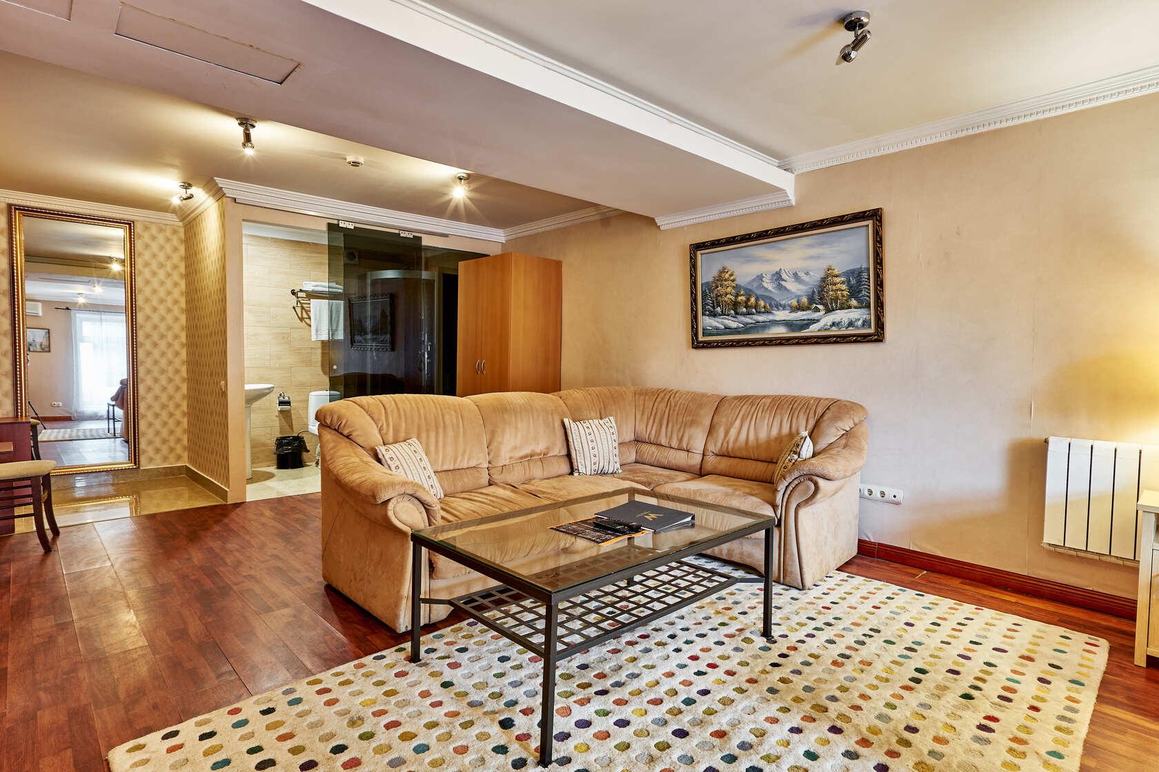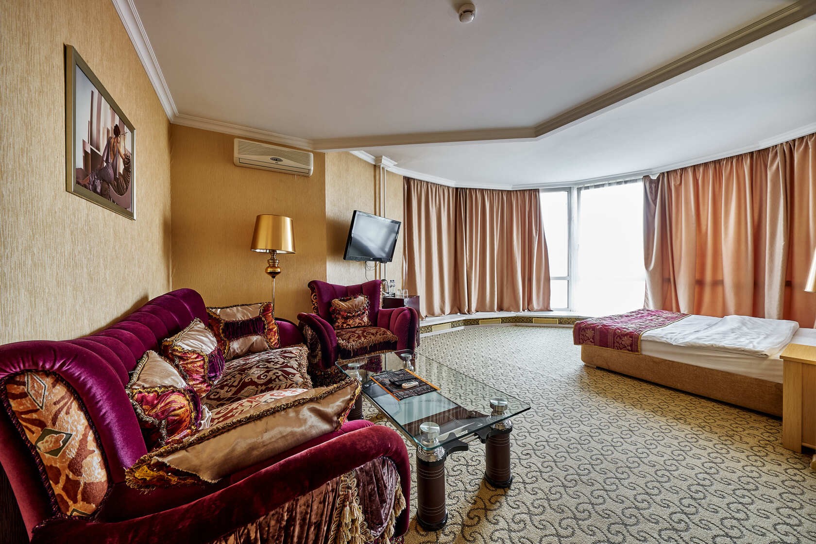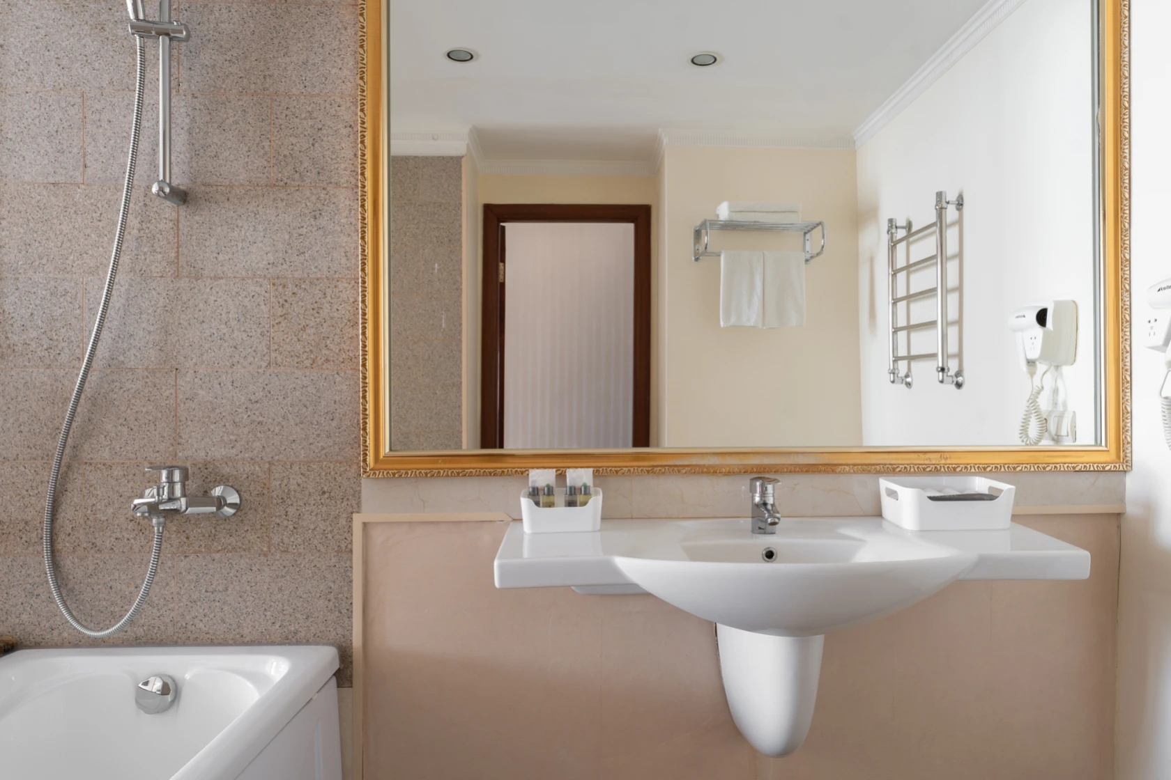 Habitación amplia de estilo clásico con zonas de ocio y de negocios. Las habitaciones tienen una superficie total de hasta 30 m2, están diseñadas en colores cálidos. El baño está equipado con Bañera o Jacuzzi y Secador de pelo.