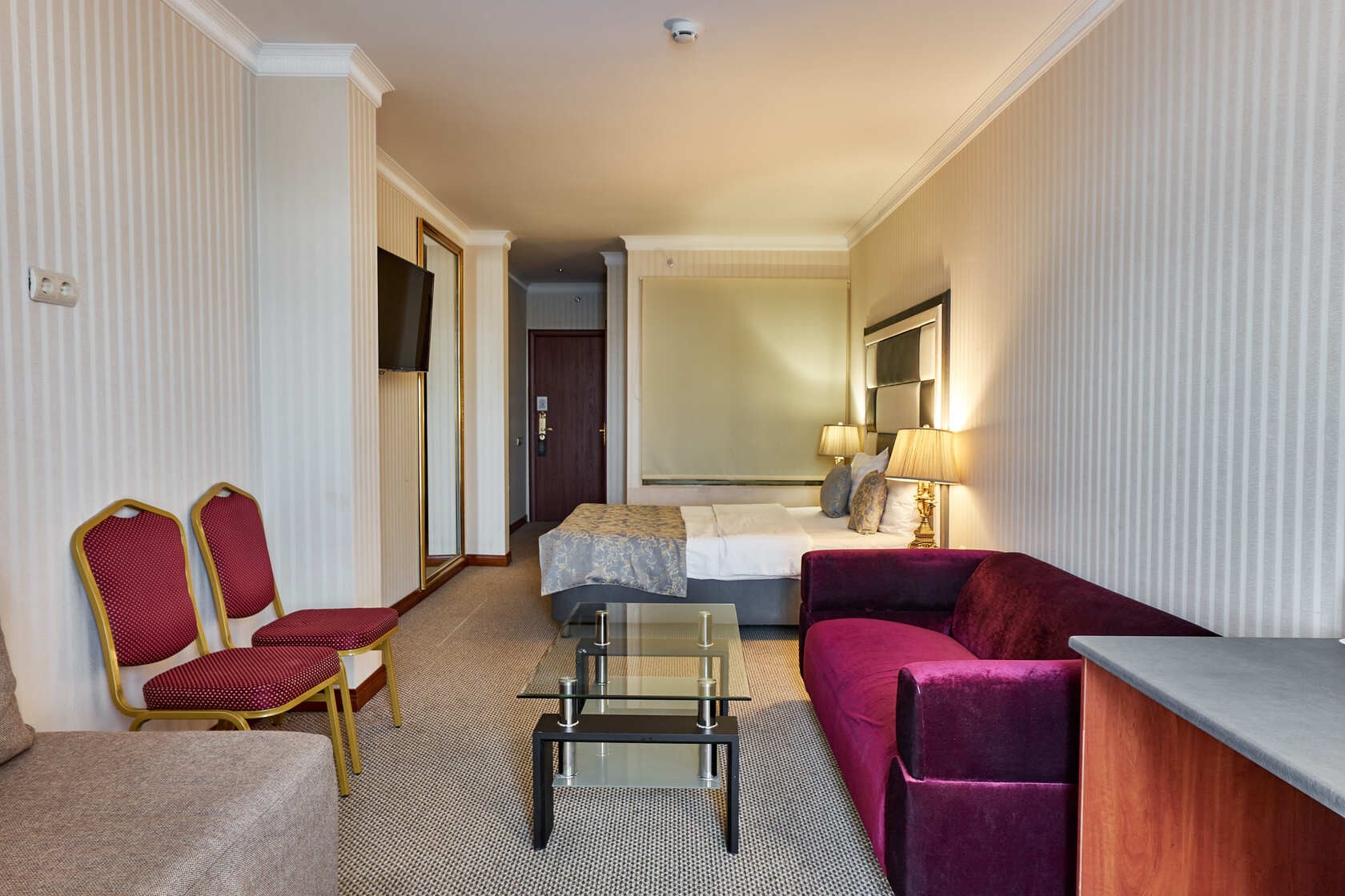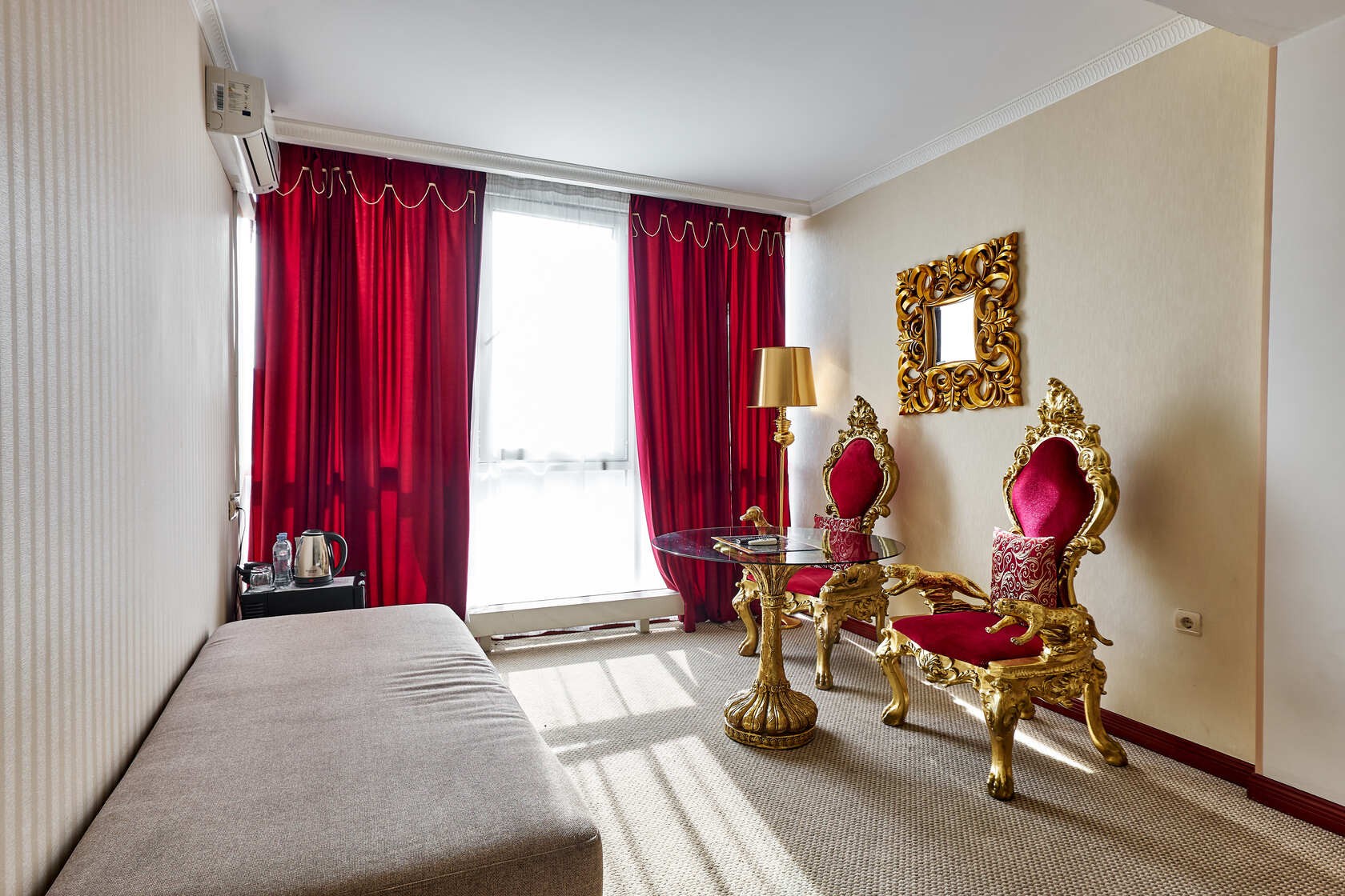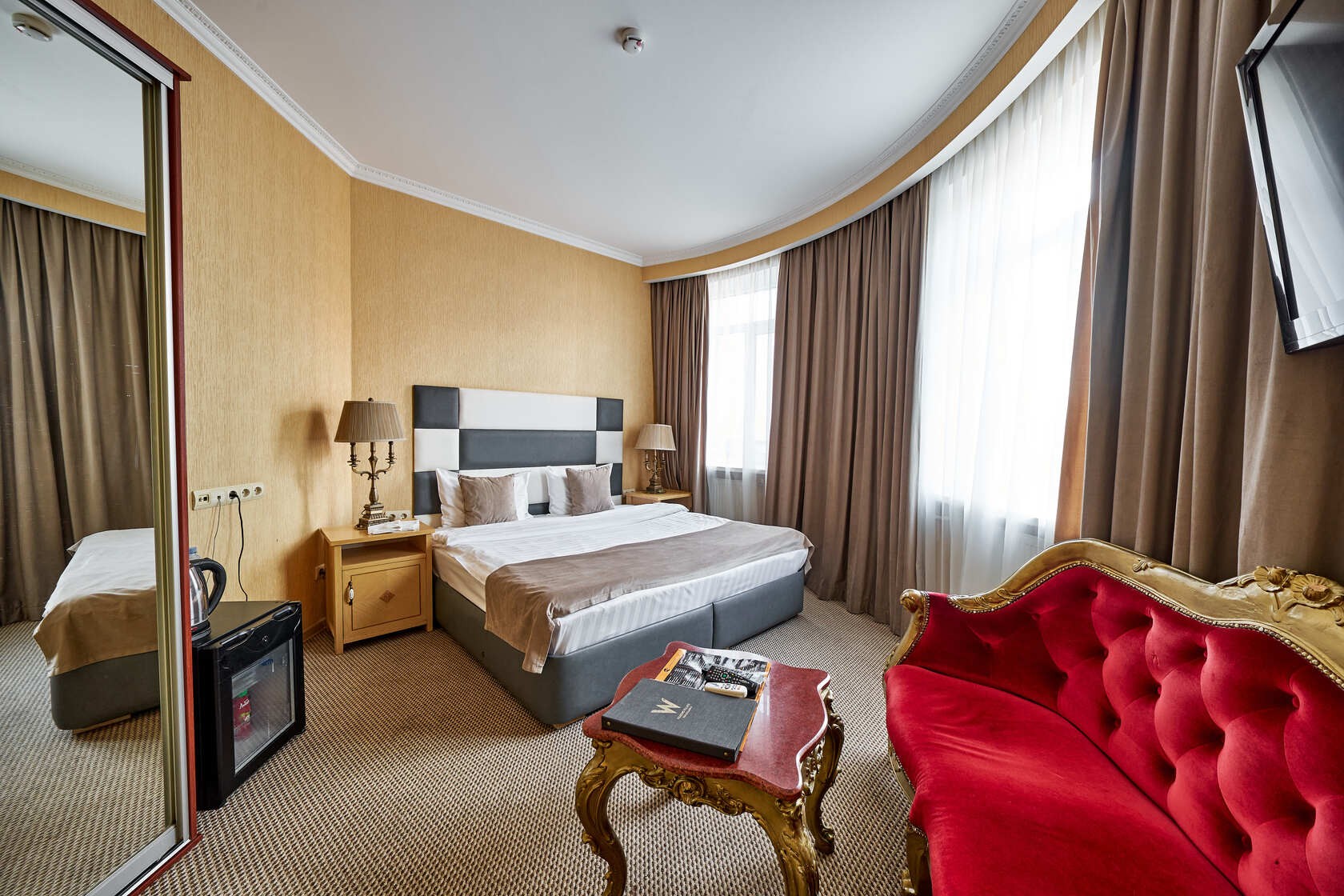 Los huéspedes disponen de TV vía satélite, Wi-Fi, Minibar, silla, Escritorio / mesa de café, armario y mesitas de noche, espejo. Cuarto de baño estándar europeo con Ducha o Bañera, hecho en un estilo clásico.