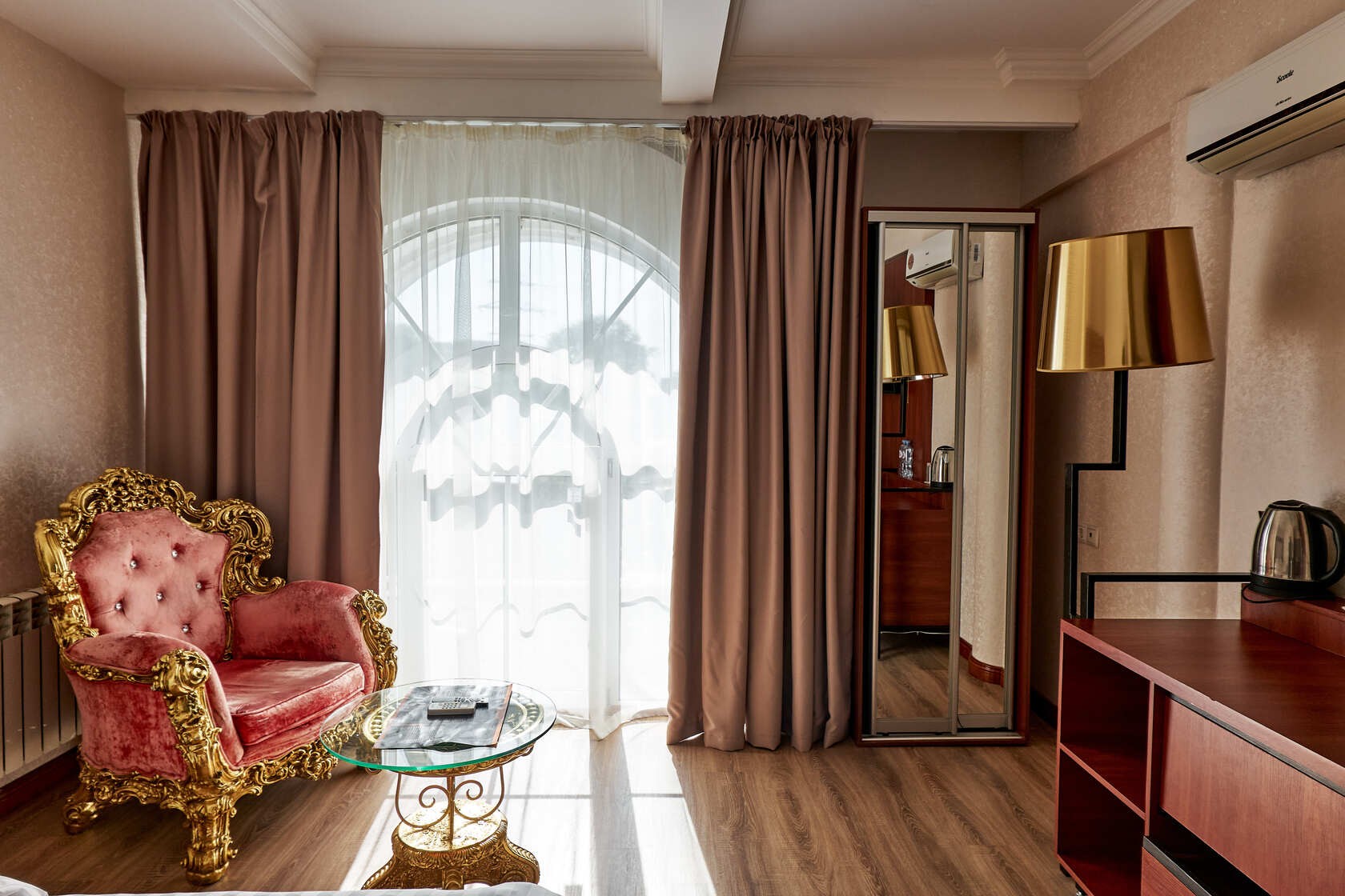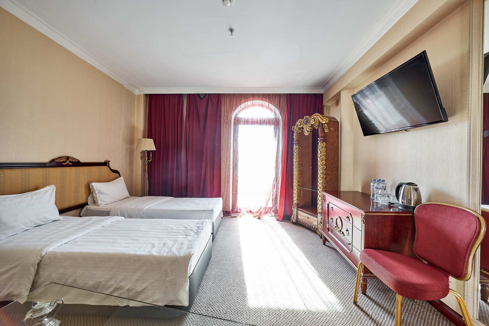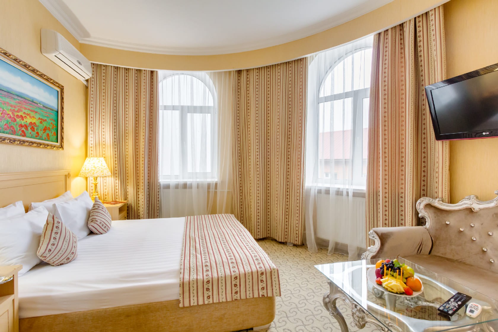 Los huéspedes disponen de TV vía satélite, Wi-Fi, Minibar, silla, Escritorio / mesa de café, armario y mesitas de noche, espejo. Cuarto de baño estándar europeo con Ducha o Bañera, hecho en un estilo clásico.