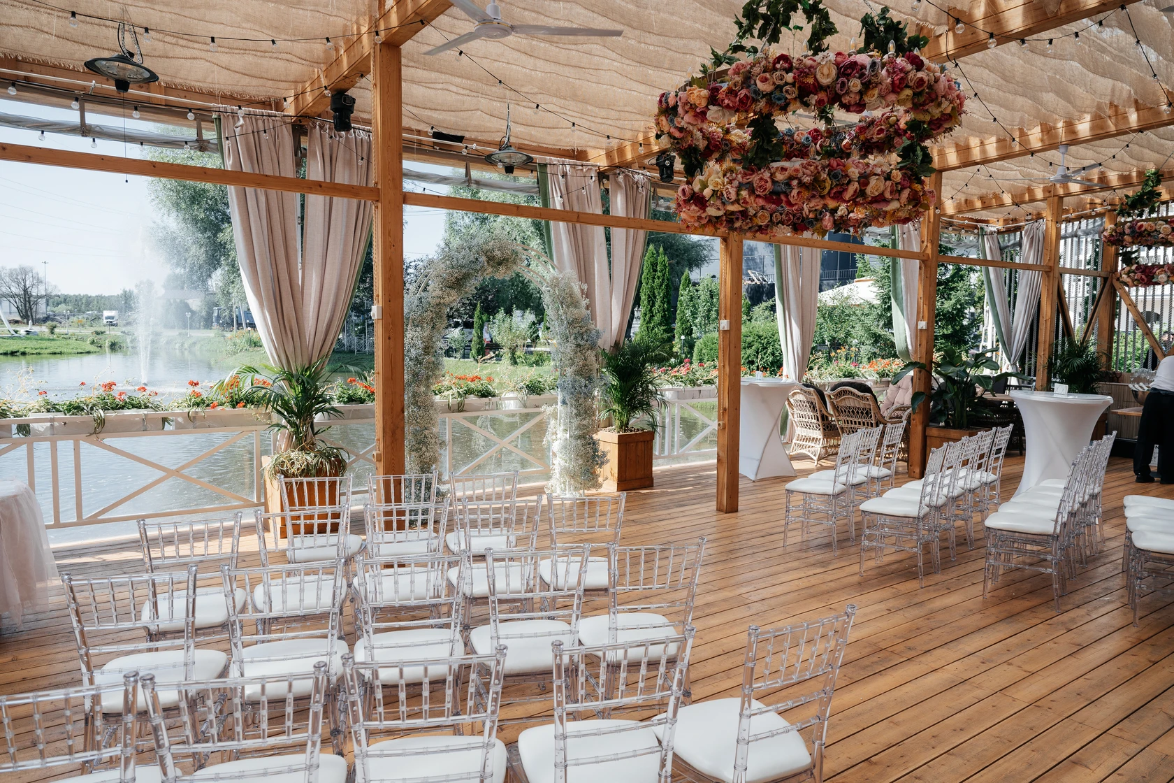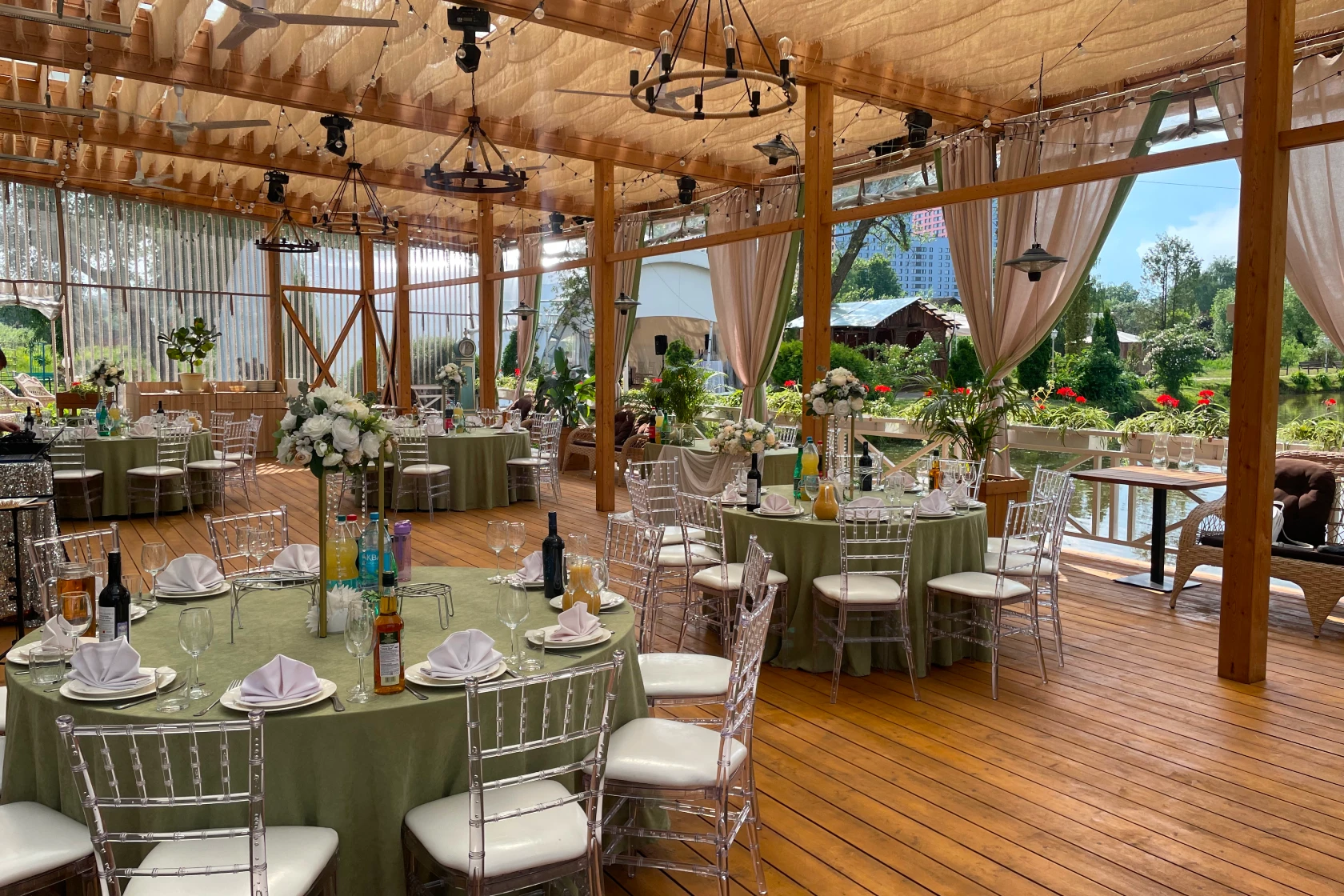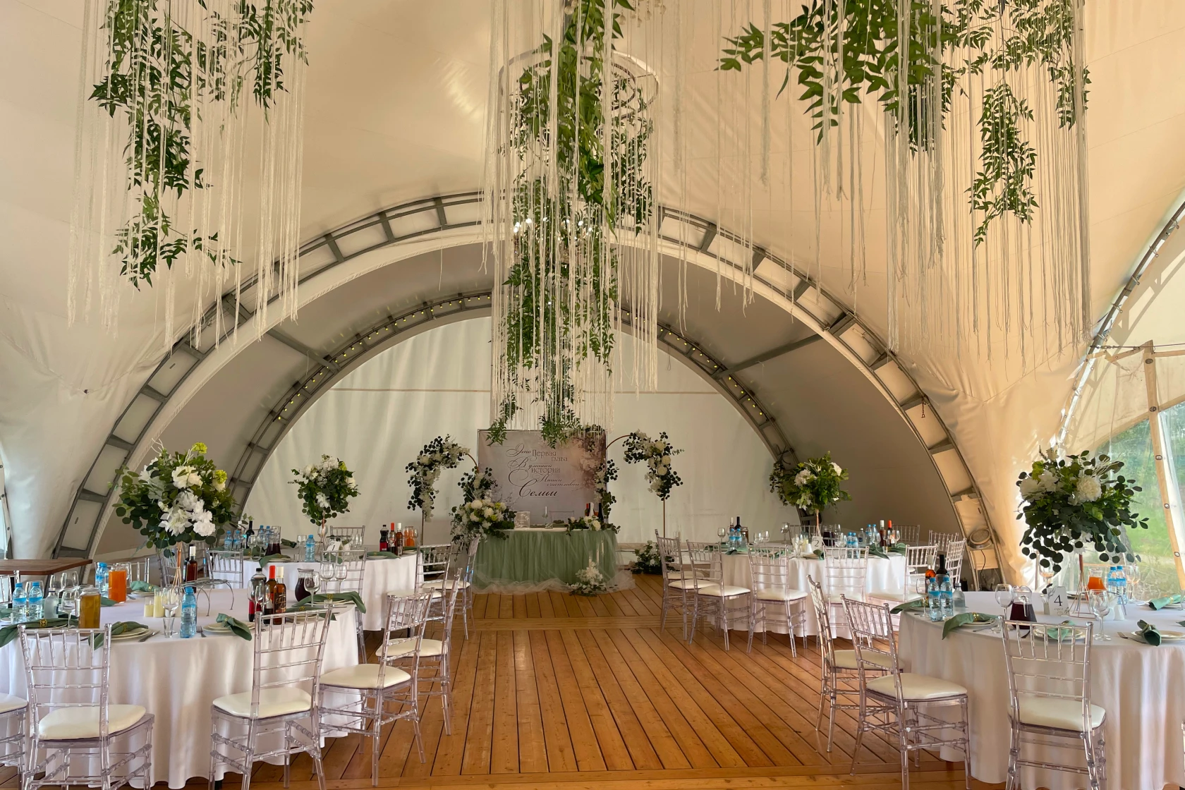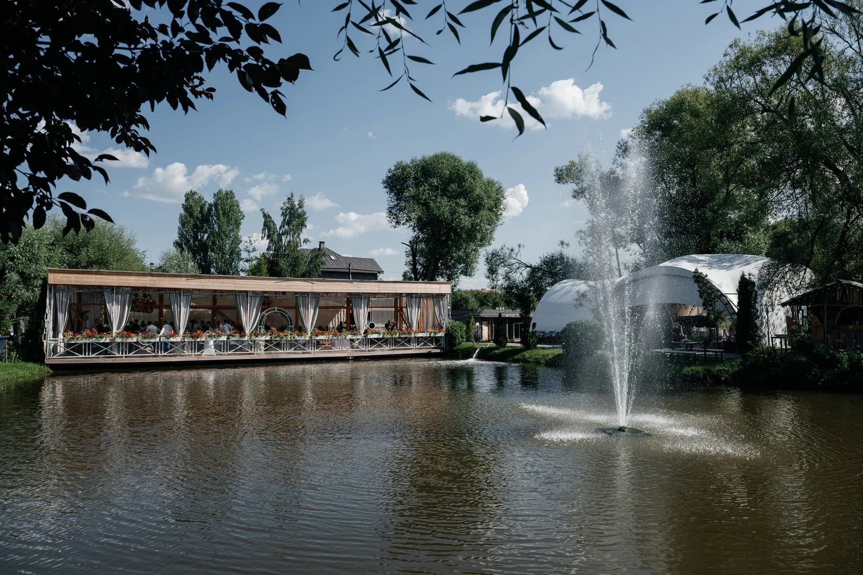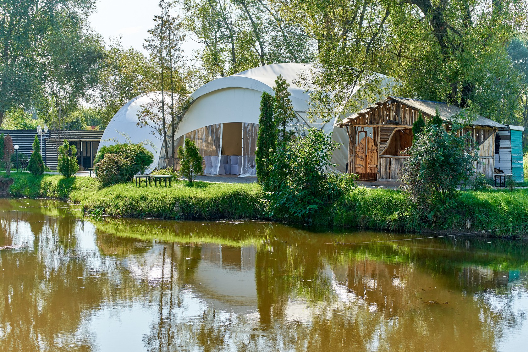 Шатер Картмазовские пруды — благодаря своей уникальной конструкции и возможности размещения большого количества гостей, площадка является идеальным местом для проведения свадеб, дегустаций и других мероприятий. Аренда зала возможна для различных форматов, так как он вмещает до 269 человек.