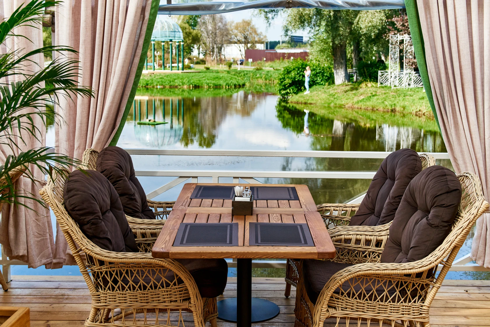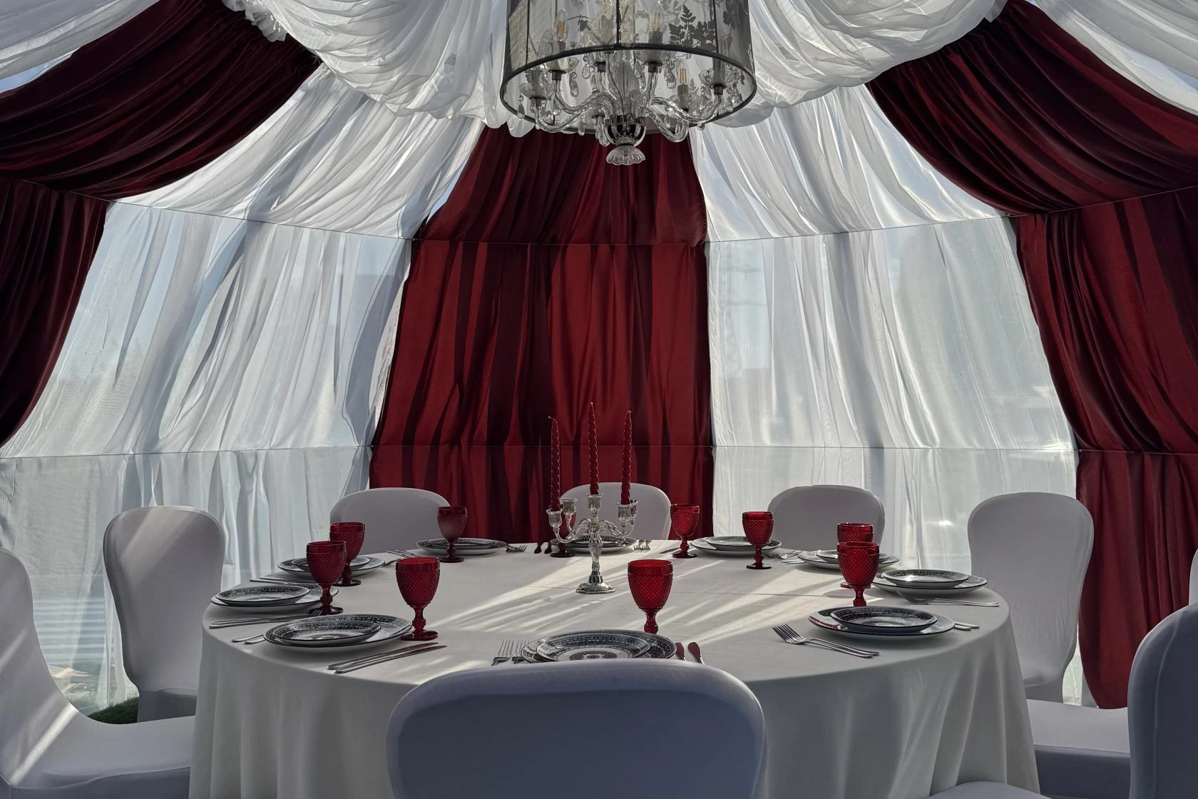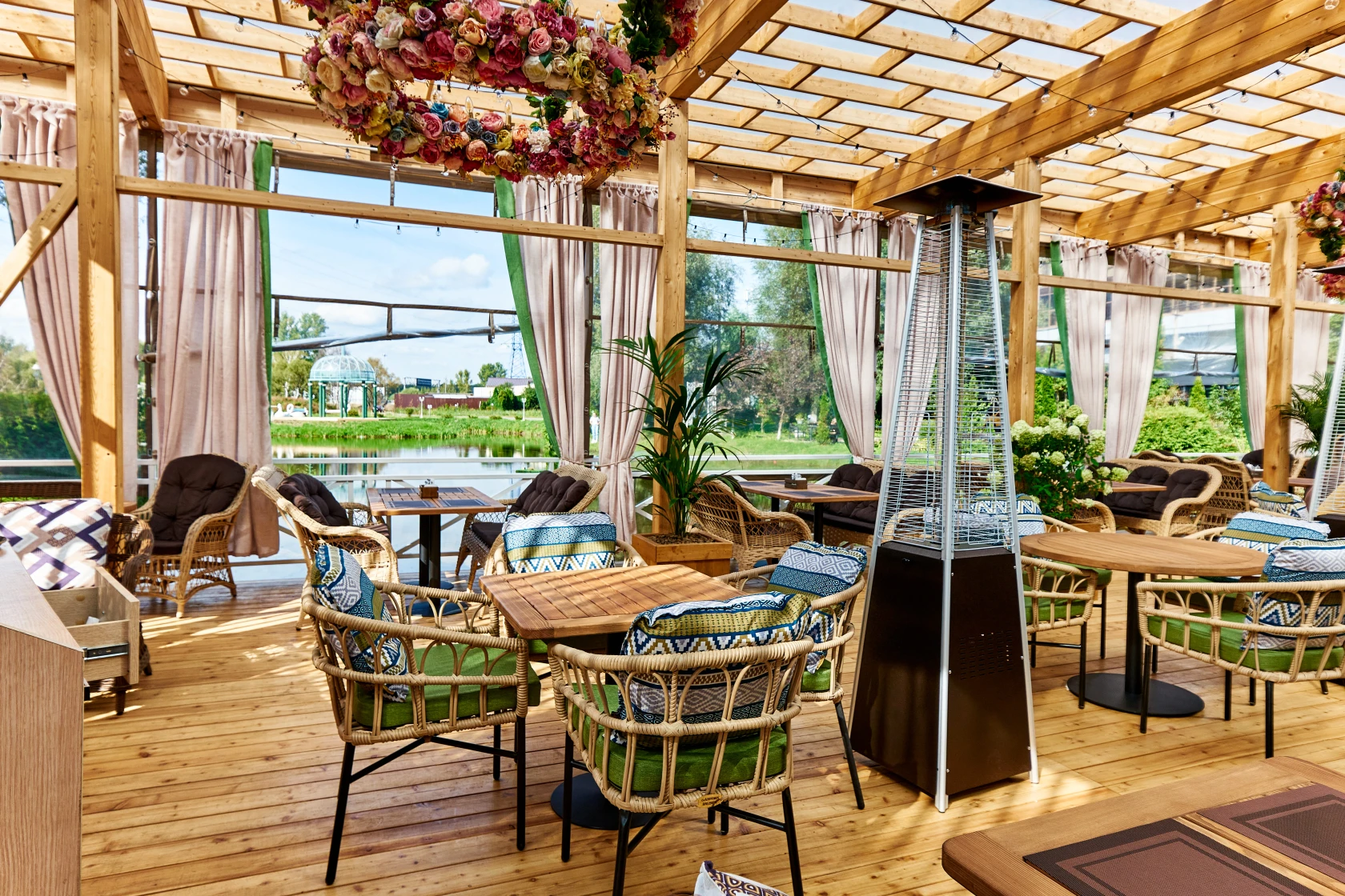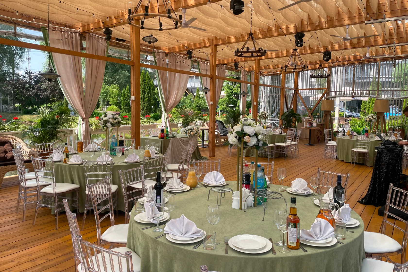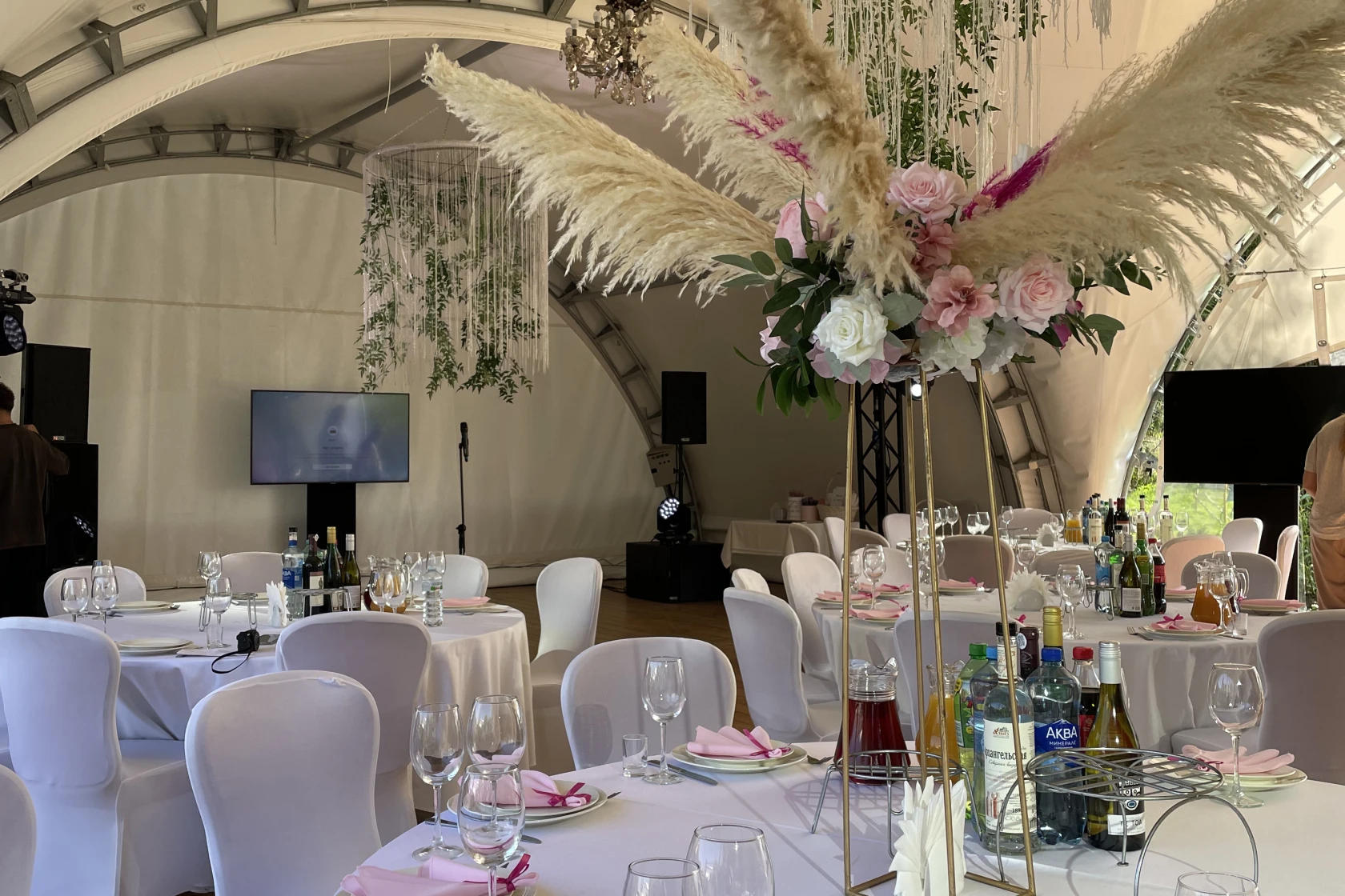 Шатер Картмазовские пруды — благодаря своей уникальной конструкции и возможности размещения большого количества гостей, площадка является идеальным местом для проведения свадеб, дегустаций и других мероприятий. Аренда зала возможна для различных форматов, так как он вмещает до 269 человек.