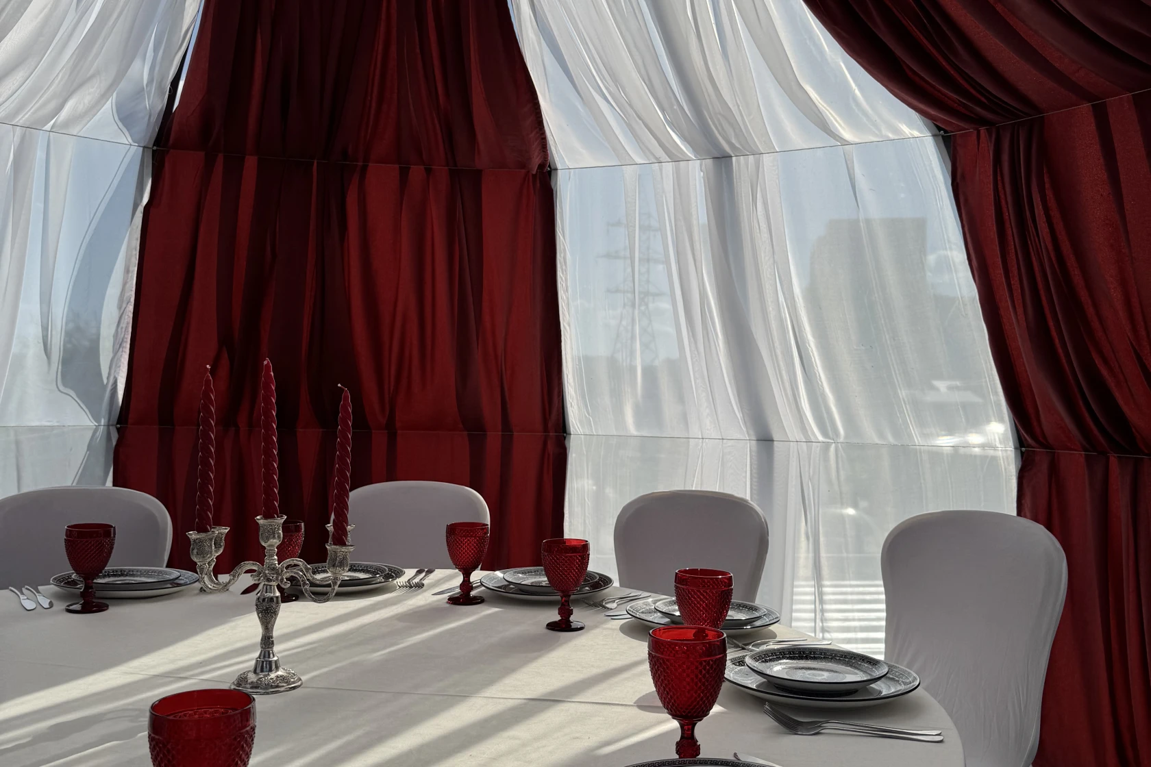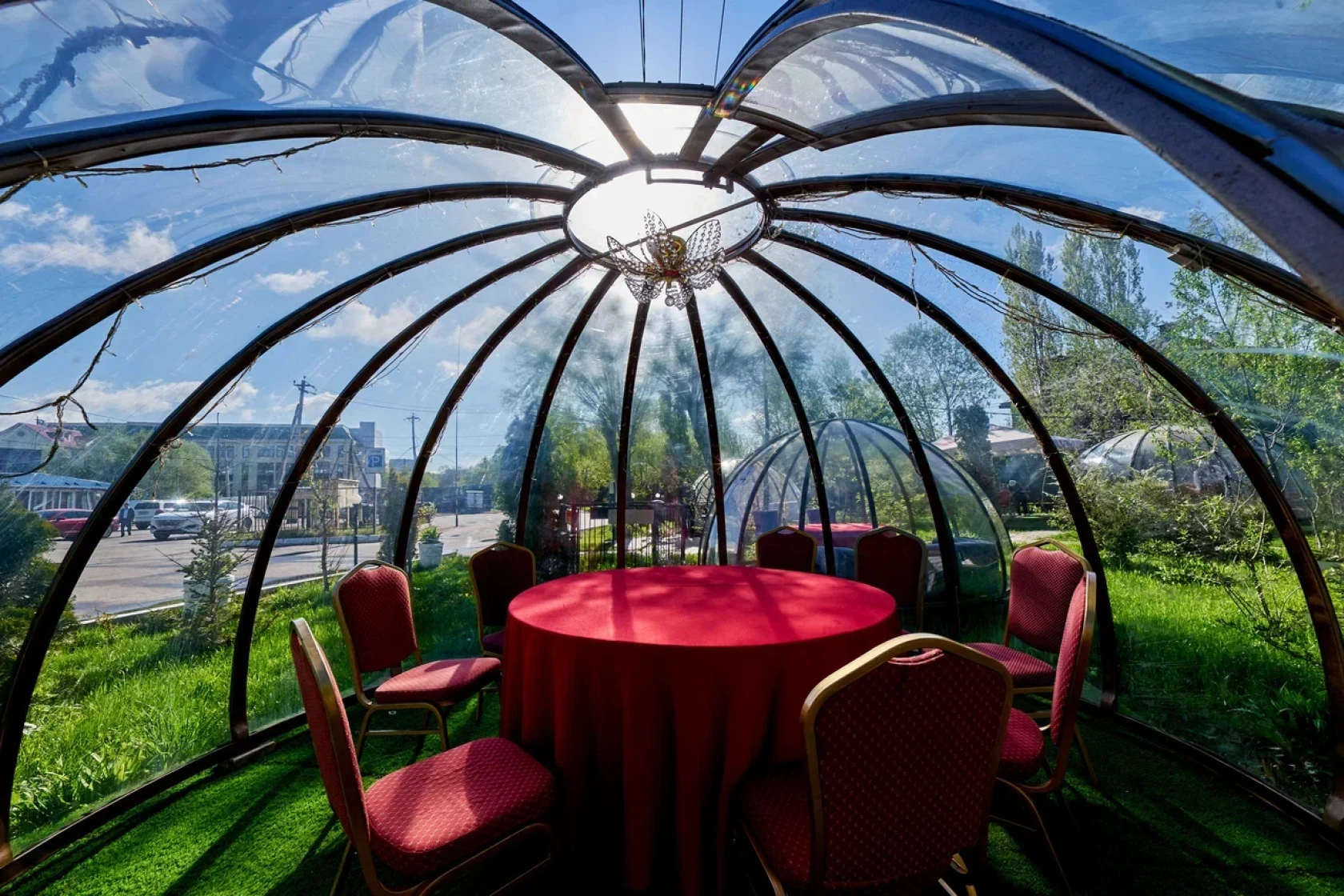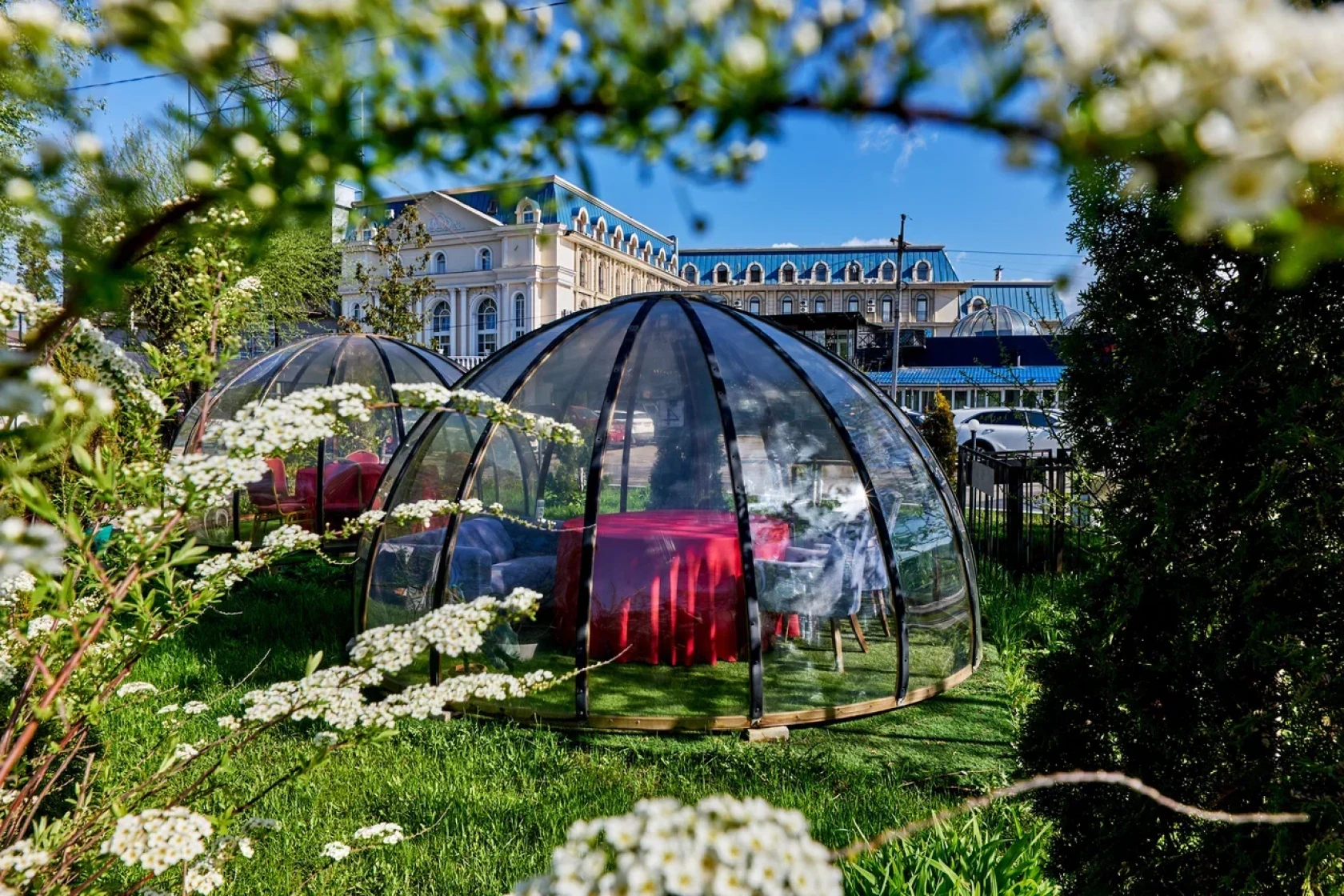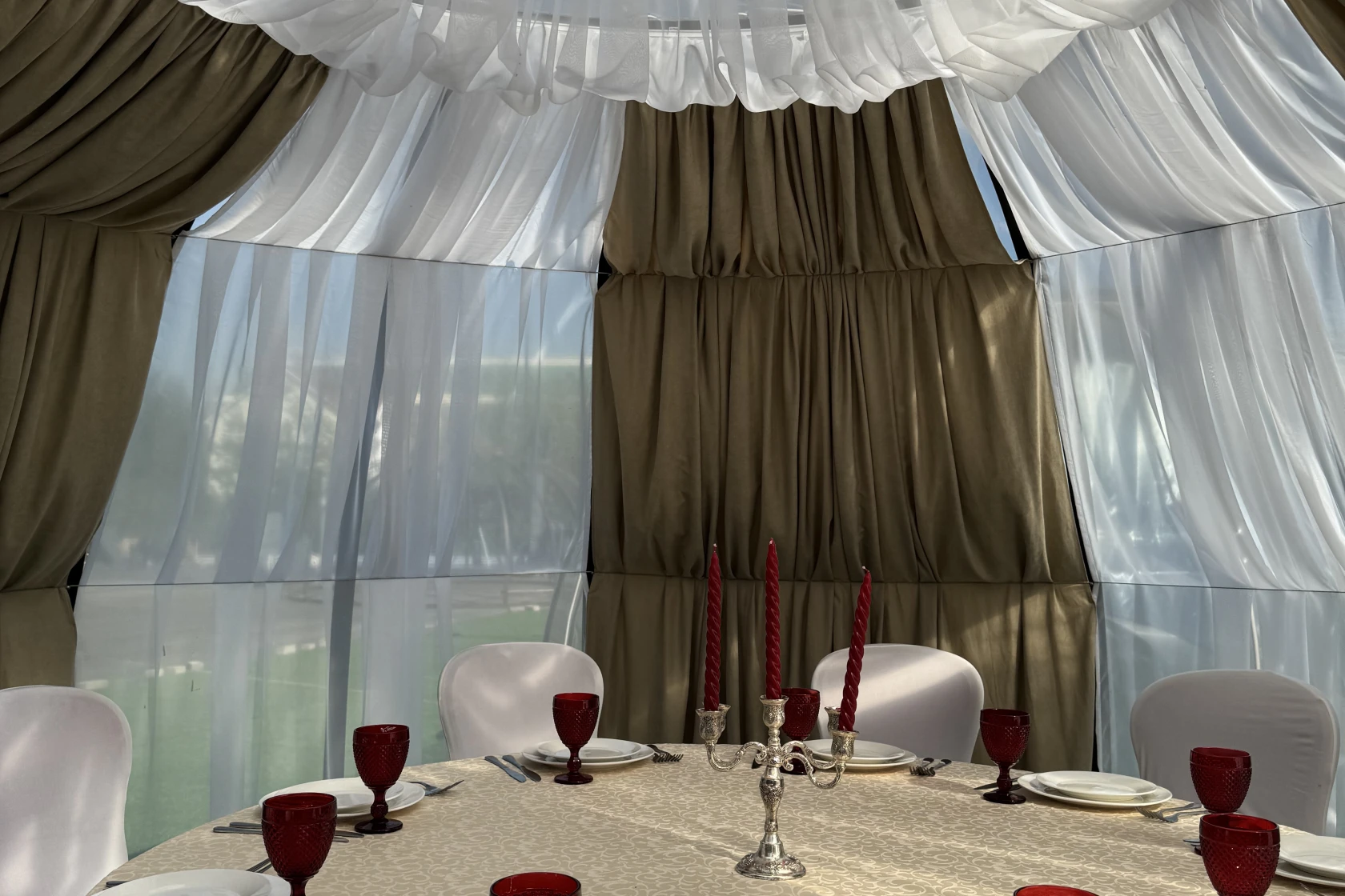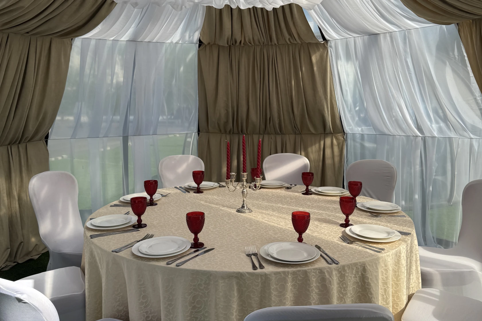 Шатер Картмазовские пруды — благодаря своей уникальной конструкции и возможности размещения большого количества гостей, площадка является идеальным местом для проведения свадеб, дегустаций и других мероприятий. Аренда зала возможна для различных форматов, так как он вмещает до 269 человек.