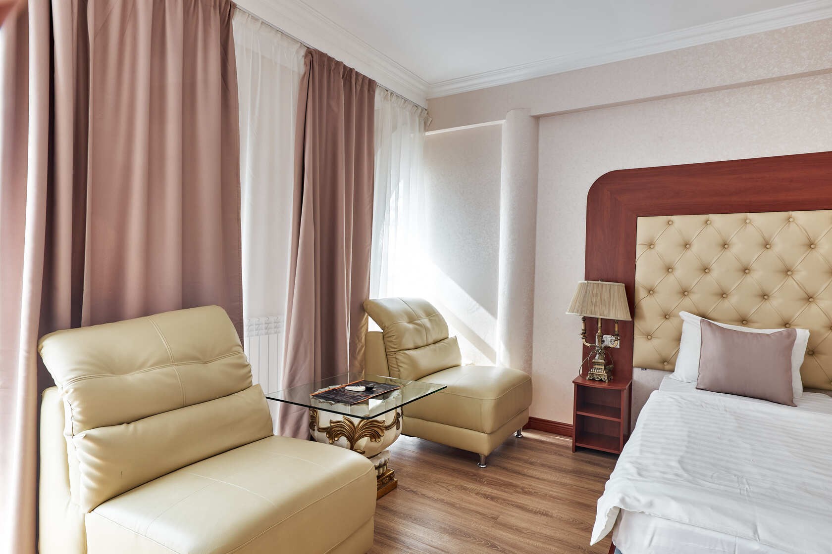 Las habitaciones de la categoría Lux de una habitación y de dos habitaciones son perfectas para los amantes del lujo y el diseño exquisito. Cada uno de ellos está hecho en un estilo único e individual. Tamaño de las habitaciones-hasta 40 m2.