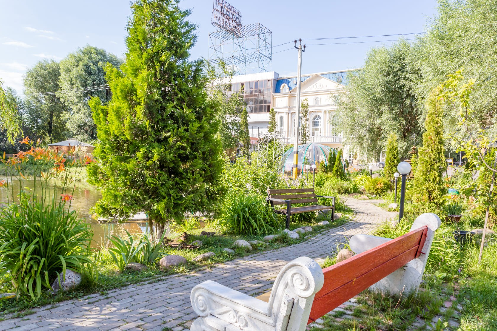 * Veranda "estanques de kartmazov": Recreación al aire libre con una vista panorámica del estanque.