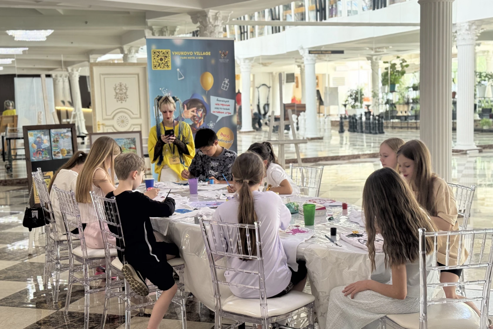 En nuestro hotel para niños zhudt: talleres creativos, juegos activos, misiones y pintura facial.