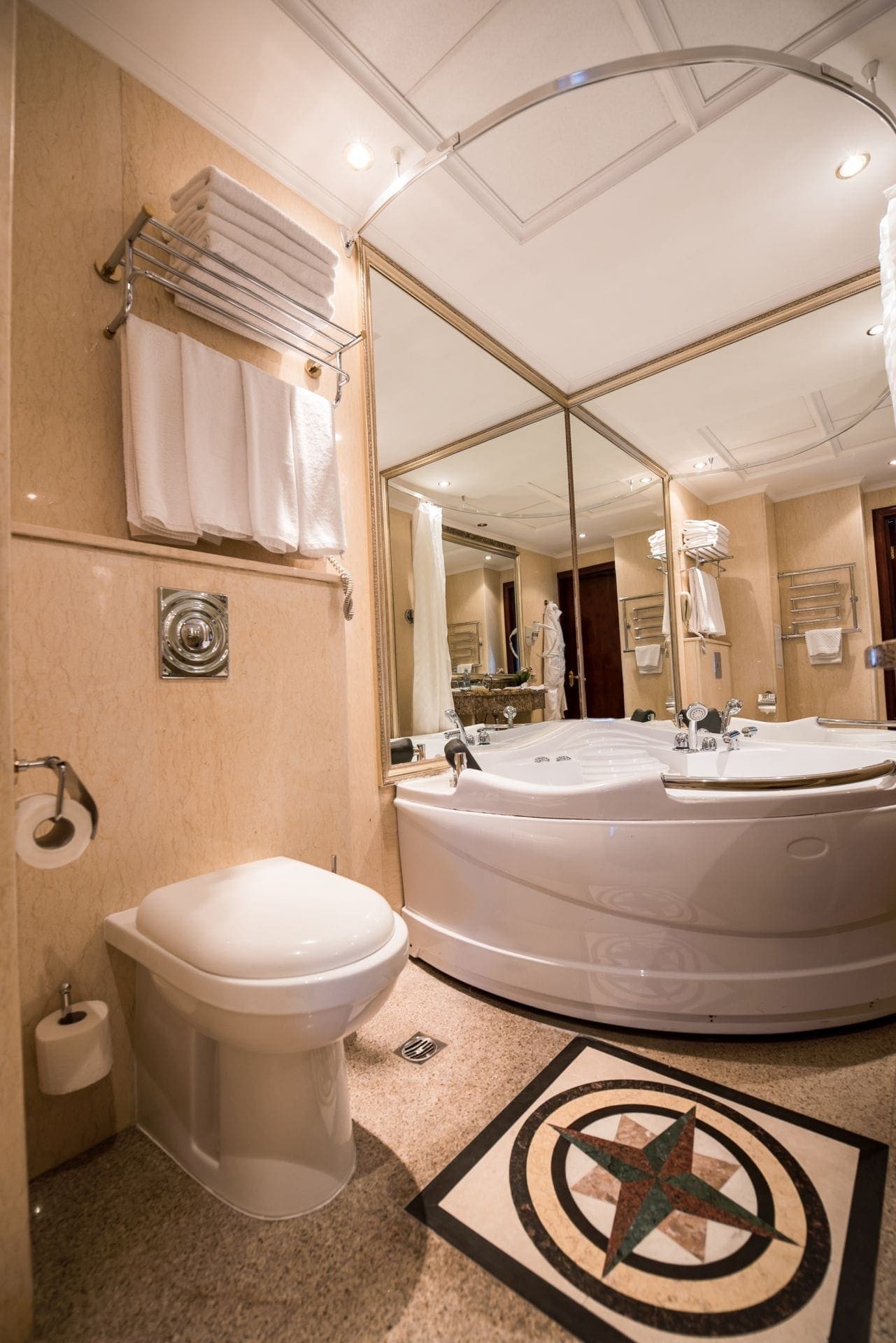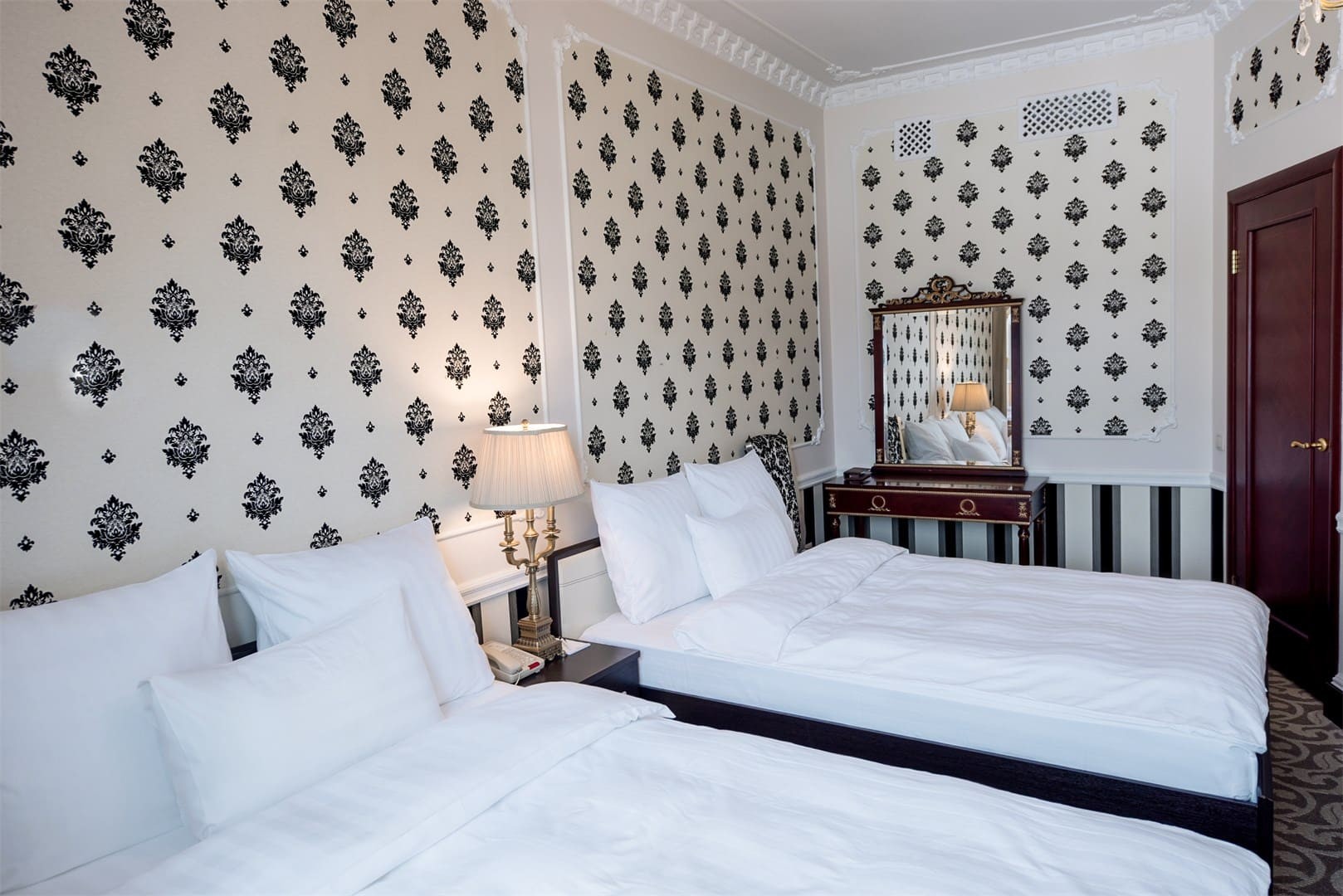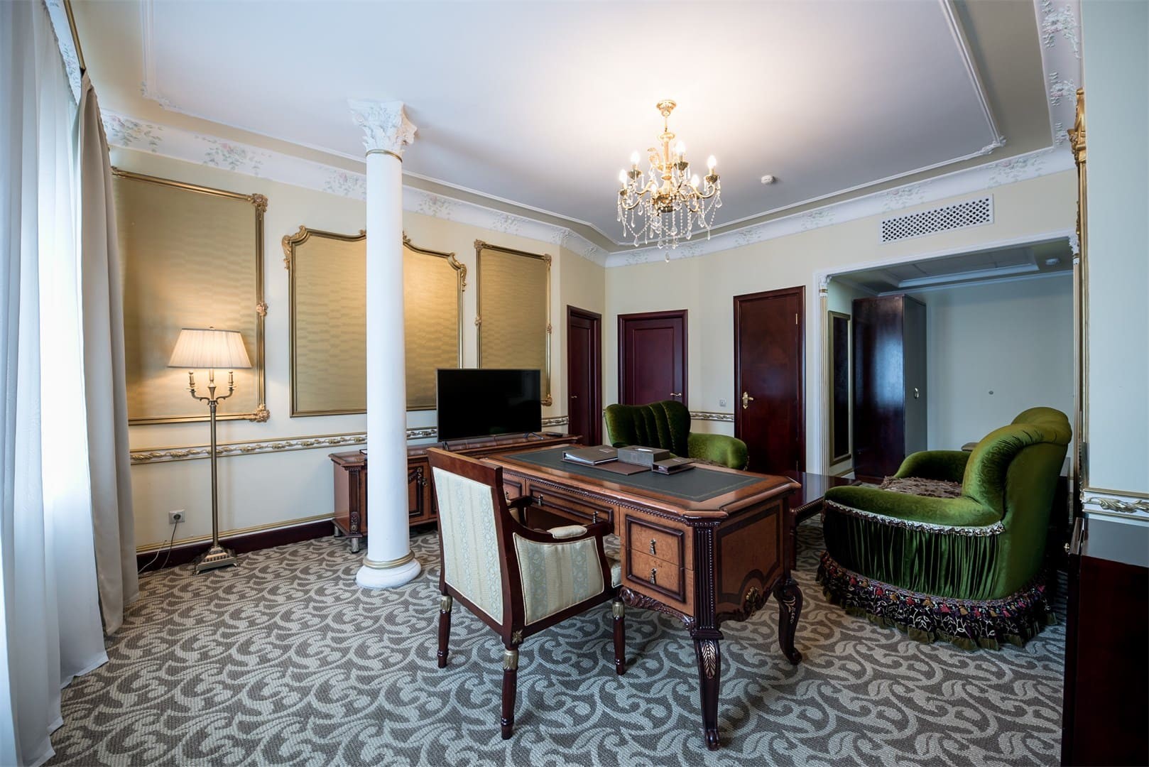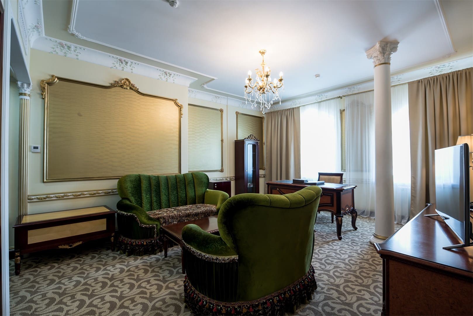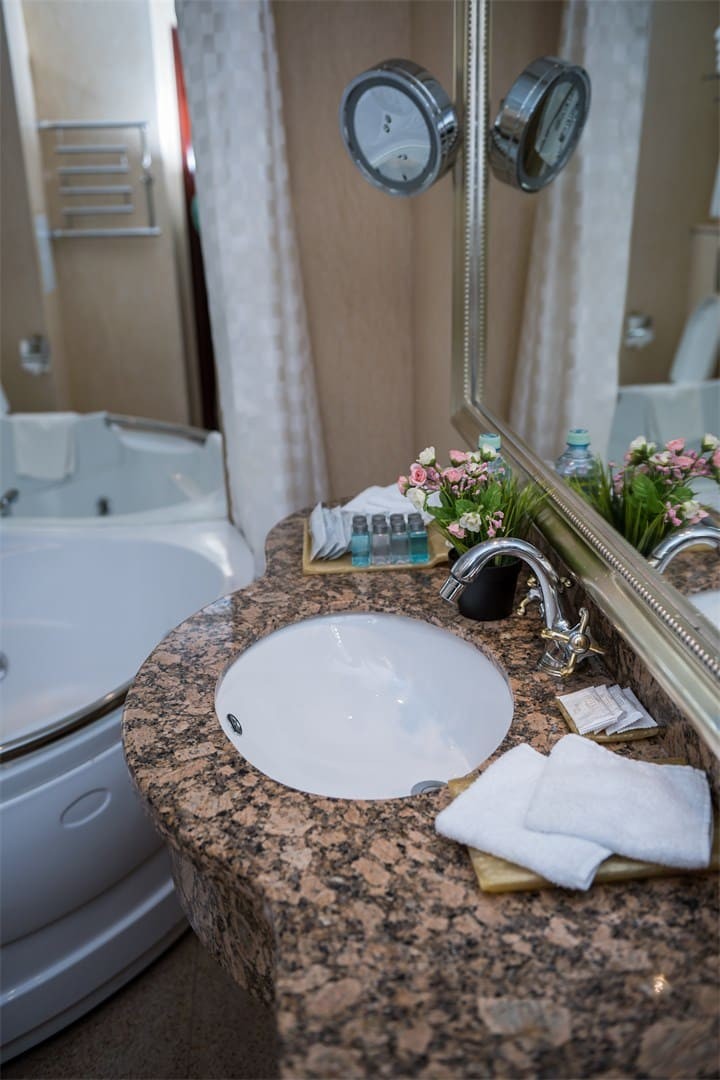 La espaciosa habitación "familiar" de dos habitaciones puede ser adecuada para relajarse con toda la familia o un grupo de amigos, ¡y para vivir durante mucho tiempo! La habitación puede alojar cómodamente hasta seis personas, además de la principal hay un baño adicional "invitado", así como una pequeña cocina para aquellos que prefieren cocinar por su cuenta. El diseño conciso y reflexivo le permite relajarse después de un día ajetreado, y si necesita trabajar, cuenta con una zona de trabajo completa con una amplia mesa y un cómodo sillón, así como una Caja fuerte para objetos de valor y documentos. Relájese con su familia o amigos, disfrutando de la comodidad prácticamente "hogareña" y los beneficios de un hotel de cinco estrellas.