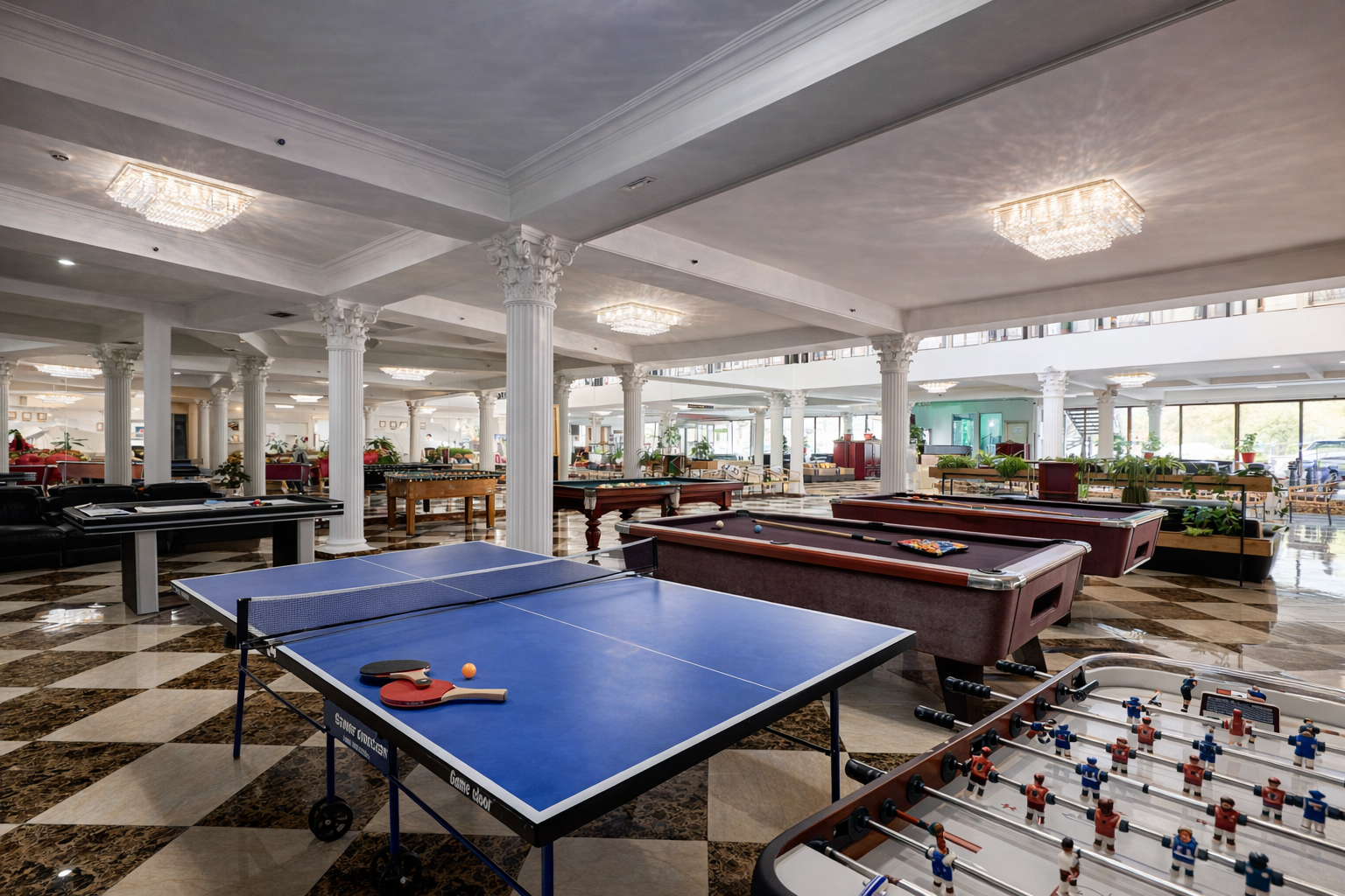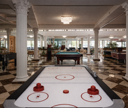Для взрослых: настольные и интеллектуальные игры, спортивные турниры, вечерние шоу и музыкальные программы. Каждую неделю — квизы, караоке и танцевальные вечера (четверг–суббота, 20:30–00:00).