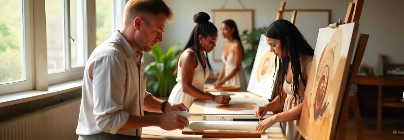 喝咖啡放松一下我们邀请您参加艺术治疗. 我们将一起缓解紧张,让自己沉浸在创造性的流动状态中。
